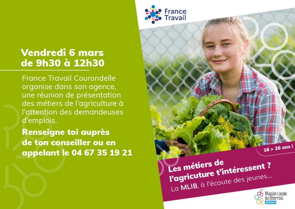 France Travail organise dans son agence, à l’attention des demandeuses d’emplois féminins, une réunion de présentation des métiers de l’agriculture, porteurs et accessibles.